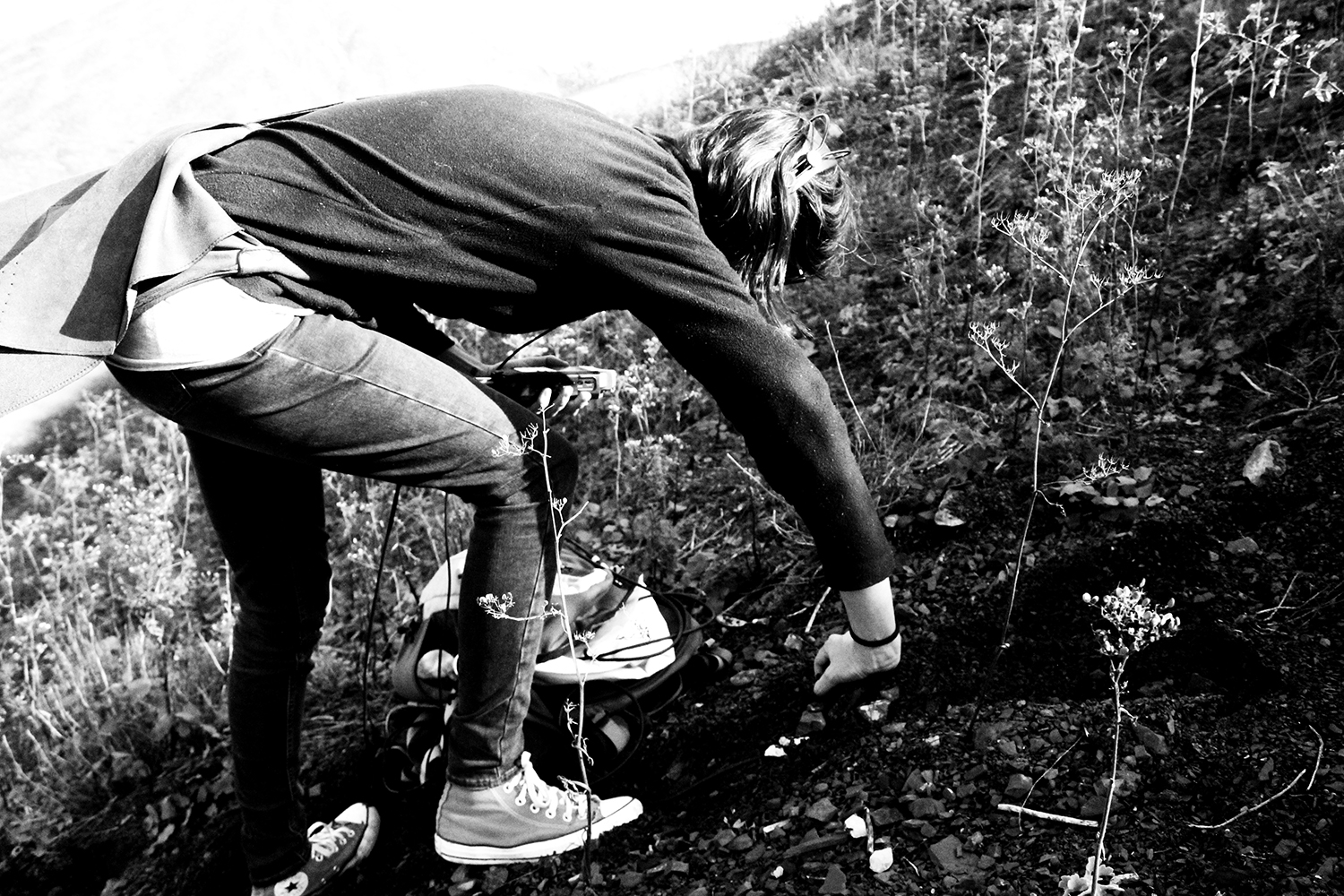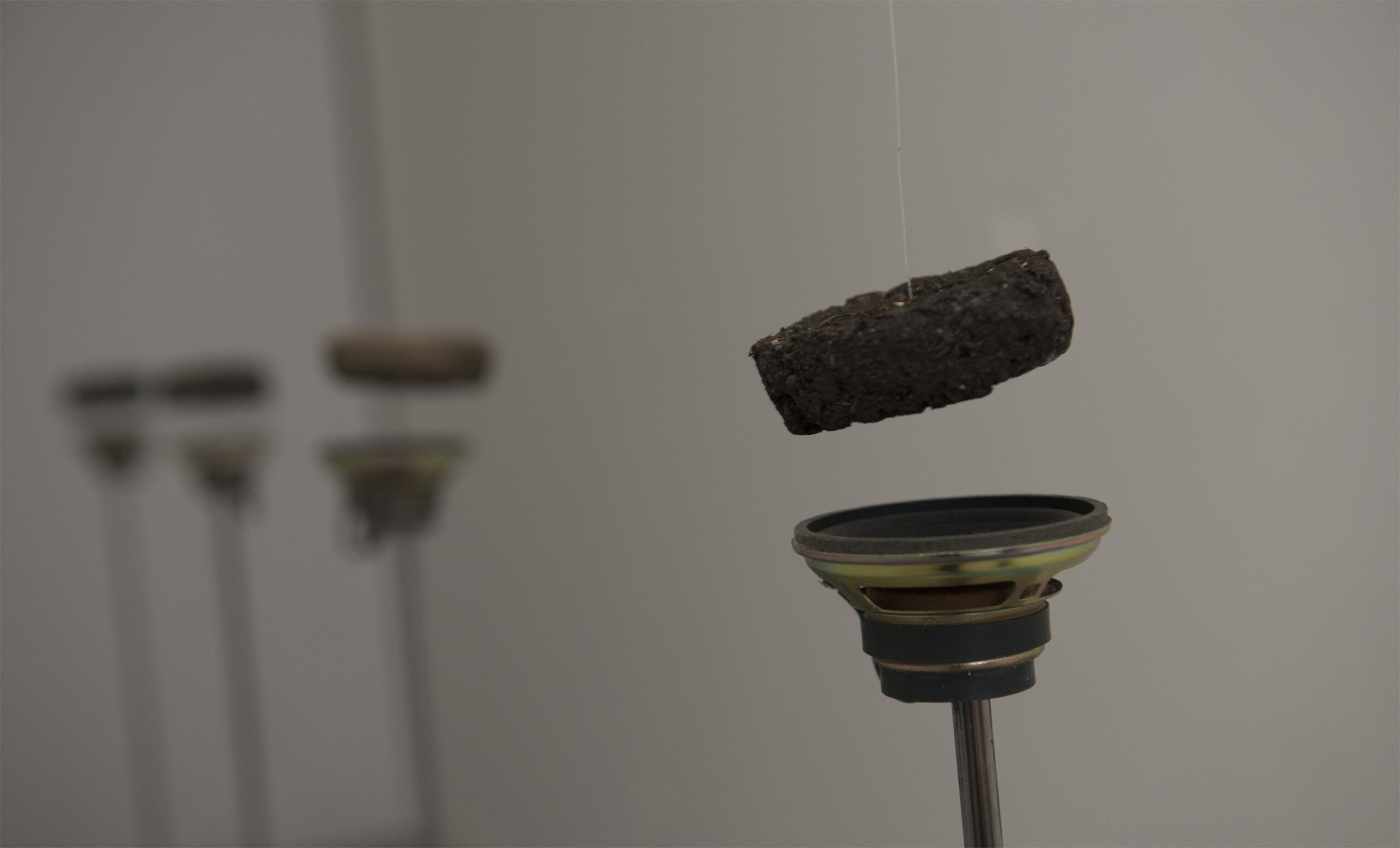 Quatre haut-parleurs fixés sur des tiges métalliques semblent surgir du sol dans une volonté de s’imposer au visiteur. Il en émane des compositions sonores créées à partir d’enregistrements dans les sous-sols du terril 11/19 de Loos-en-Gohelle et des champs alentours. Ces sons mineraux et creux rendent compte de la perte de biodiversité dues à la pollution des sols mais aussi des transformations des milieux naturels sous l’effet de l’activité humaine méprisante des équilibres de vie.